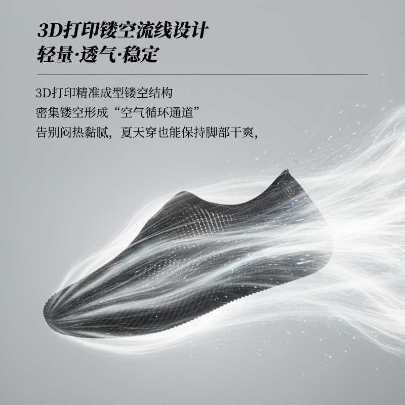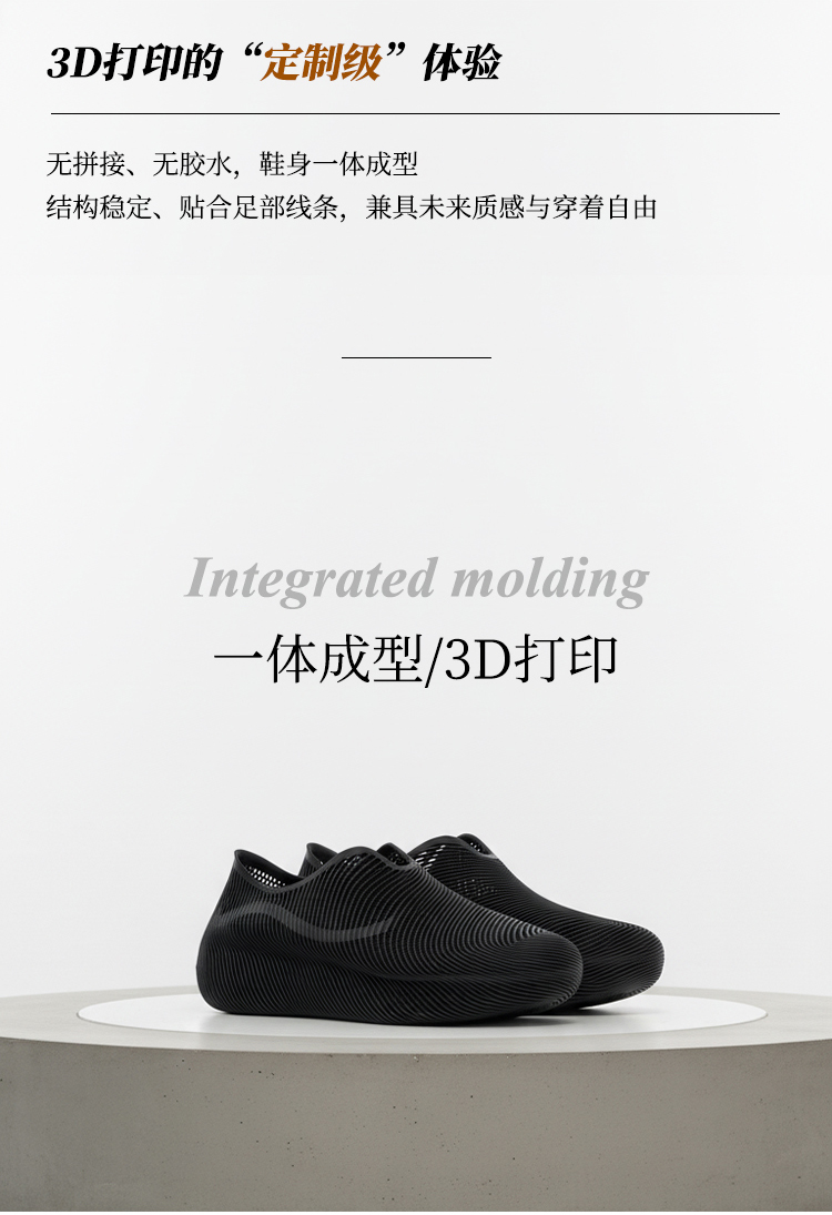 3D打印运动鞋 2026新款重新定义行走的艺术与科技,高分子弹性材料,一体成型,3D镂空流线设计:轻量、透气、稳定、环保。